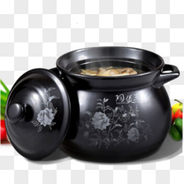 打开盖子的黑色砂锅