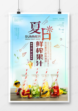 七彩清新夏日果汁促销宣传海报