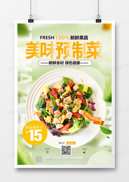 绿色健康美味预制菜沙拉美食促销海报