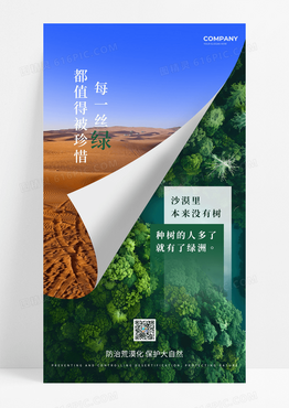 实拍风漠化治理沙漠绿洲宣传公益文明环境海报