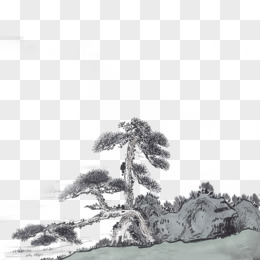 水墨山松树