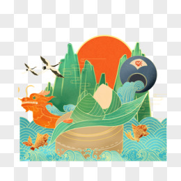 手绘矢量国潮风山川祥云飞鹤免抠元素