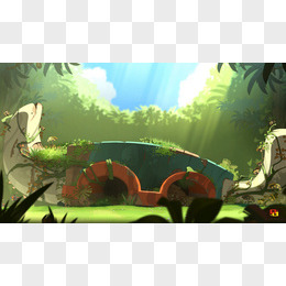 游戏卡通绿色山洞