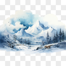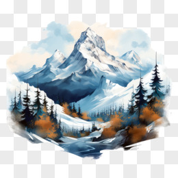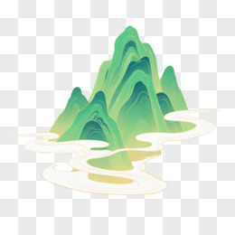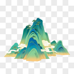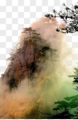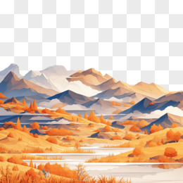 国潮插画秋天山顶的黄色树木风景免抠元素