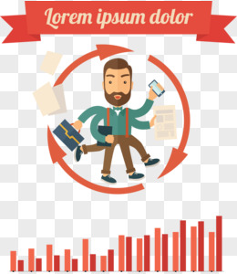手绘商务人士忙到三头六臂免抠素材