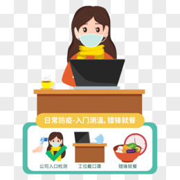 卡通手绘疫情期间上班防护小贴士免抠元素