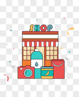 城市矢量手绘元素灯马路街道店铺椅子牌子