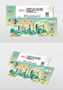 国潮创意上海地标建筑手绘插画系列旅游票门票入场券