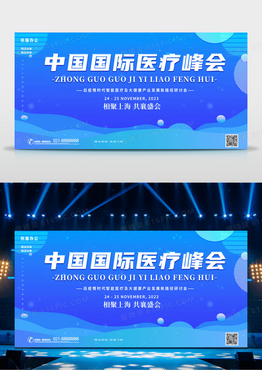 大气蓝色时尚简约国际医疗峰会相继上海疫情研讨会科技展板