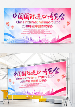 中国上海首届国际进口博览会中国风彩色渐变创意展板设计中国国际进口博览会