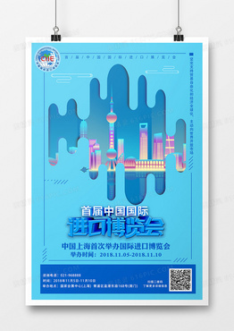 中国上海首届国际进口博览会立体字创意海报设计首届中国国际展览会