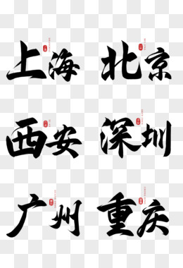 手写地名城市毛笔字元素