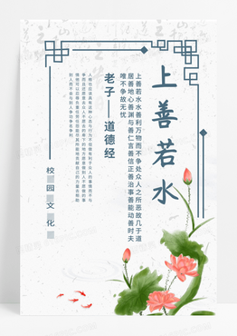 简约荷花上善若水老子校园风海报