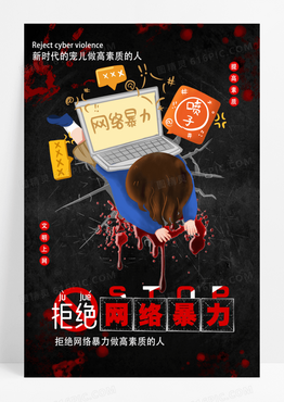 创意黑色拒绝网络暴力公益海报文明上网公益宣传海报