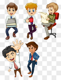 平面矢量扁平风淡蓝色商务人物电脑仙人掌