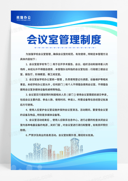蓝绿色简约大气商务科技风学校规章制度学校制度牌 会议室管理制度