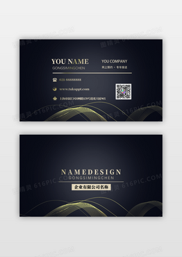 黑金线条曲线装饰公司名片商务通用名片模版