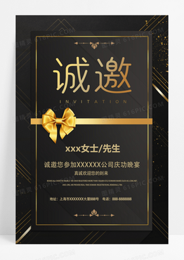 黑金纹理轻奢高端大气邀请函海报