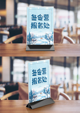 手绘卡通商务风格冬令营签到处模板竖桌签