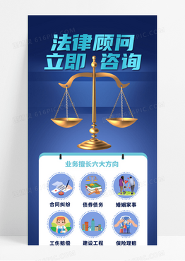 深蓝色商务简约法律顾问律师电商新媒体海报UI长图