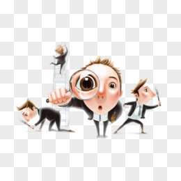 手绘卡通三个穿西装的男人站在业绩表前免抠元素