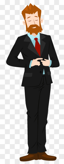 手绘卡通穿西装的男人站在柱状图旁免抠元素