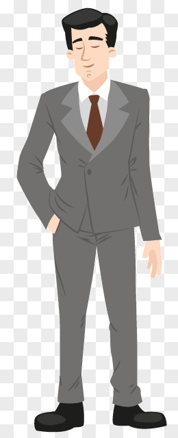 手绘卡通穿灰色西装的男人沿着箭头奔跑免抠元素