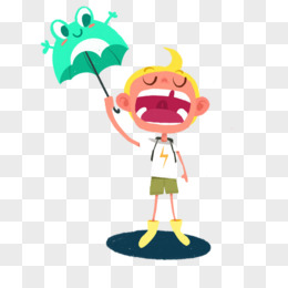 小孩上学打雨伞元素