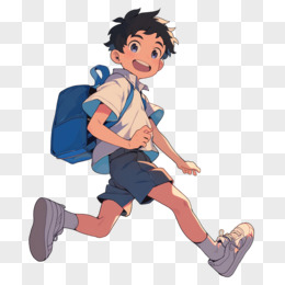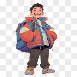 卡通风开学季背书包的男中学生免抠元素