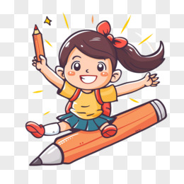 开学季学生和文具笔结合卡通免抠元素