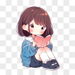 手绘一组Q版学生手拿书本免抠元素