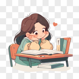 卡通学生学习看书免抠元素