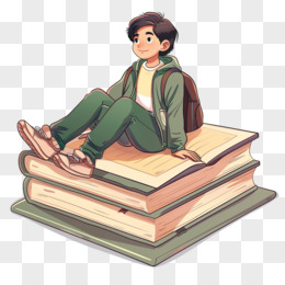 卡通学生与书本结合免抠元素