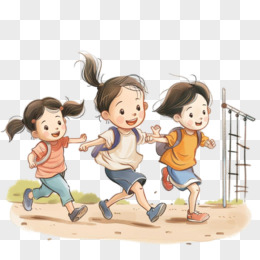 开学季小学生欢迎新同学卡通小场景手绘免抠元素