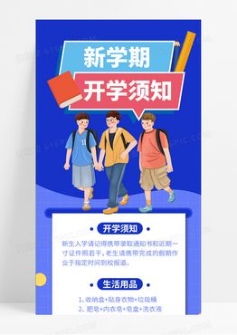 蓝色插画风新学期开学须知长图开学季