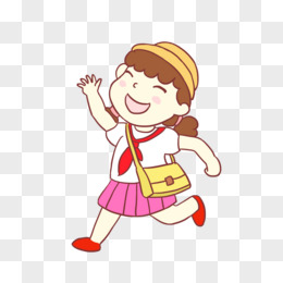 卡通手绘开心走路的女学生素材