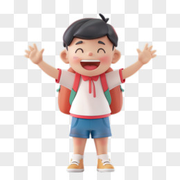 背着书包开心打招呼的小男孩3D元素