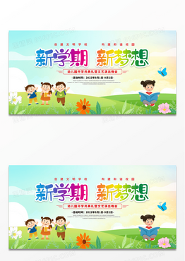 绿色创意卡通风格新学期新梦想开学了上学了宣传展板