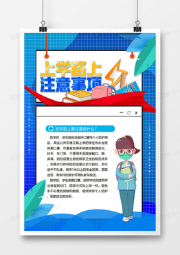 蓝色简约上学路上防疫注意事项宣传海报