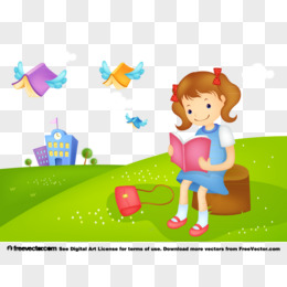 手绘卡通小女孩坐在铅笔上面口苏词啊