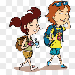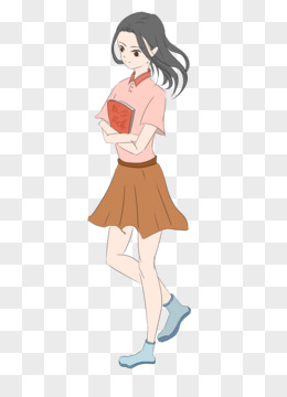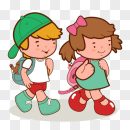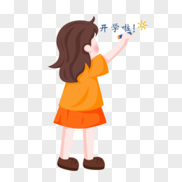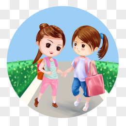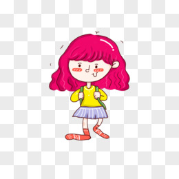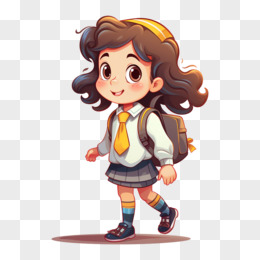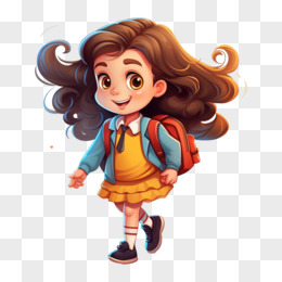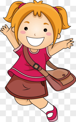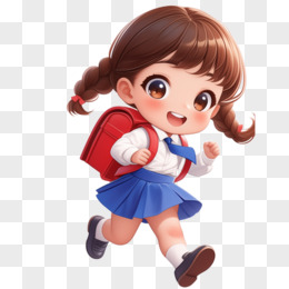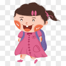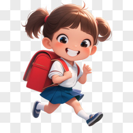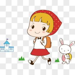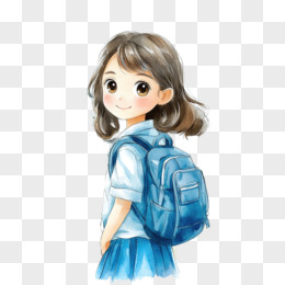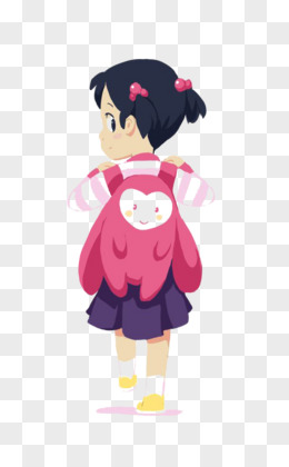 卡通手绘风格背着书包上学的女小学生免抠元素