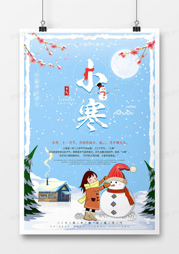 小寒节气人物卡通海报