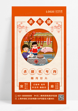 红色风格杀年猪春节习俗UI手机海报设计