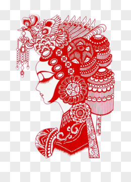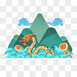 一组手绘国潮剪纸风山峦山峰套图系列四素材