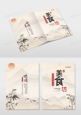 土黄色水墨山水美食坊封面画册封面菜单封面模版