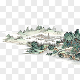 一组手绘国潮剪纸风山峦山峰套图系列一素材