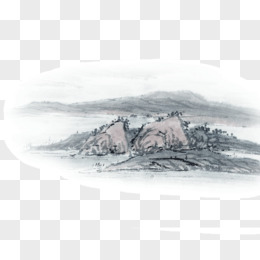 手绘山水水墨免抠元素