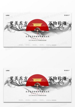 东方美学样板房房地产介绍古风古韵扇子别墅山水风光典雅水墨展板