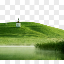 手绘青绿色弥漫山水免抠元素