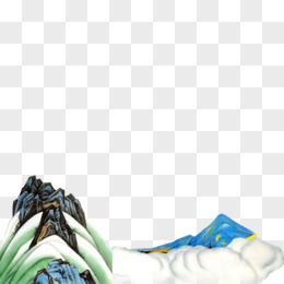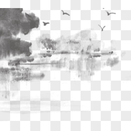 国潮山水画湖泊山脉和丹顶鹤免抠元素